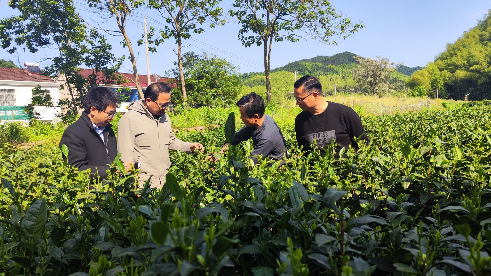 本网讯 为推深做实学习贯彻习近平新时代中国特色社会主义思想主题教育,落实《中共安徽农业大学委员会关于在全校开展调查研究的工作方案》,5月8日-9日,工学院院长陈黎卿、安徽省农业机械技术推广总站副站长蔡海涛一行5人,赴岳西、霍山实地调研全省茶叶生产机械化发展状况。
